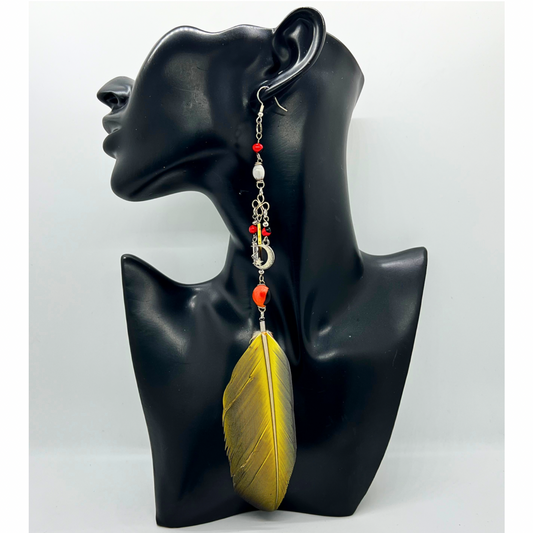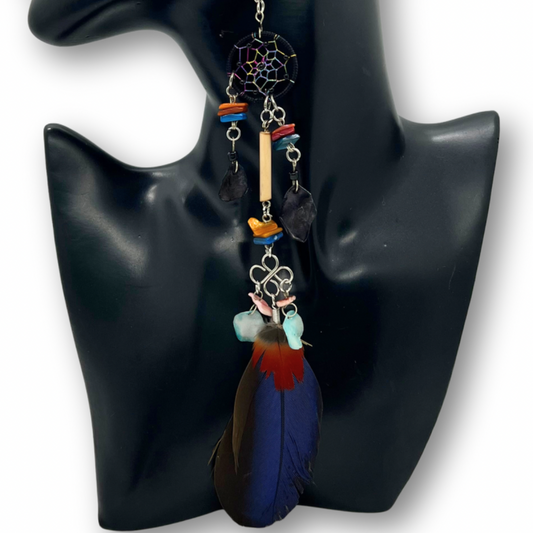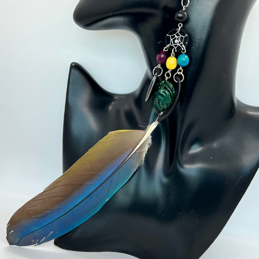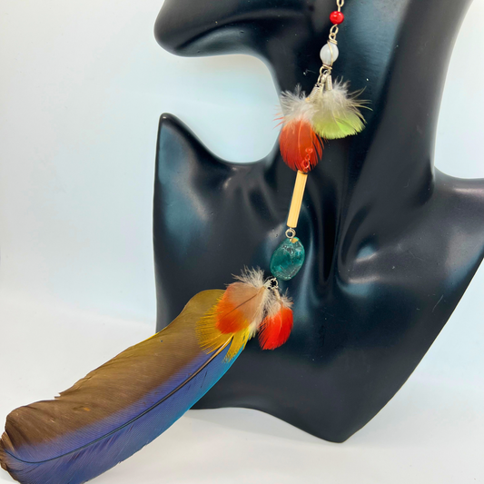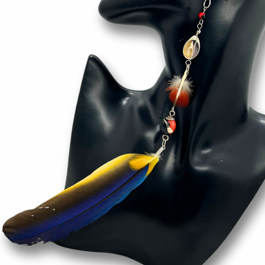 Solitarios earrings are a captivating collection of handcrafted jewelry that embodies the essence of the Amazon. Each piece is a unique blend of natural elements like Guacamayo feathers, huayruro seeds, and porcupine spikes, combined with symbols of nature and spirituality such as stones, dream catchers, and celestial motifs. Designed to make a statement, these earrings vary in size, typically around 9 inches in length and 1.5 inches wide, offering a bold, yet elegant accessory option. Fitted with hypoallergenic hooks, Solitarios earrings are comfortable for anyone to wear, bringing a piece of the Amazon's vibrant spirit and deep cultural heritage to your everyday style.